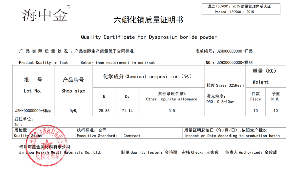 產(chǎn)品名稱:六硼化鏑(DyB6)