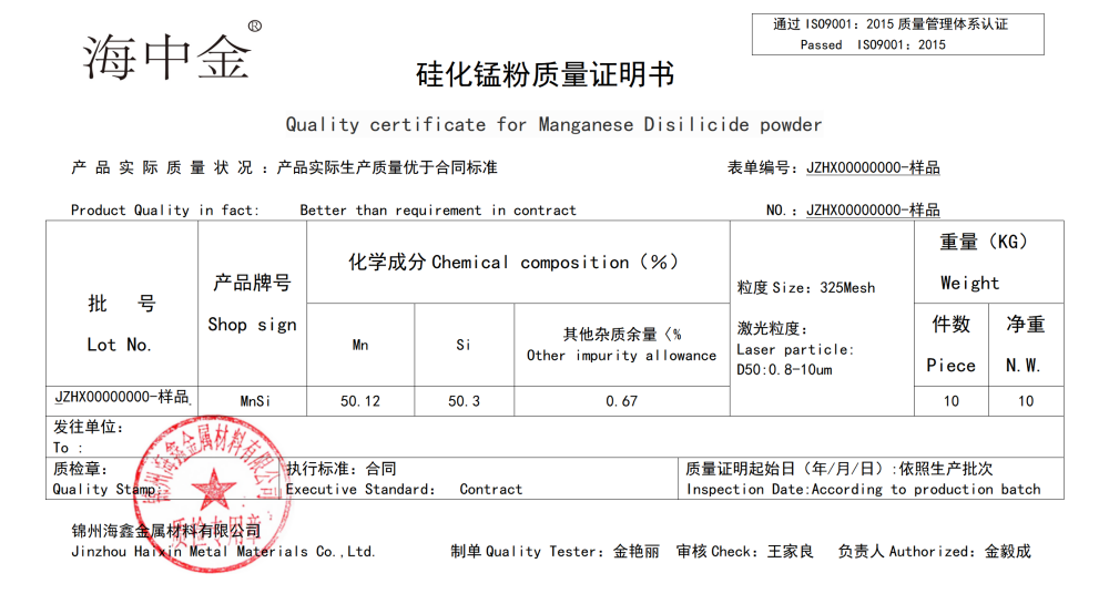 產品名稱:二硅化錳(MnSi2)